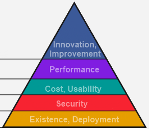 Abraham Maslow is a famous figure in the field of psychology. Interestingly he only studied the minds he considered the healthiest of the population. Perhaps this perspective is how he came up with Maslow’s hierarchy of needs. The concept describes the various levels of needs and wants that a human should fulfill before they will desire to fulfill a goal in the next level. It is my proposal that for most non-trivial real world software systems, a similar hierarchy of needs is required to help give you a sense of how to best direct your development efforts.